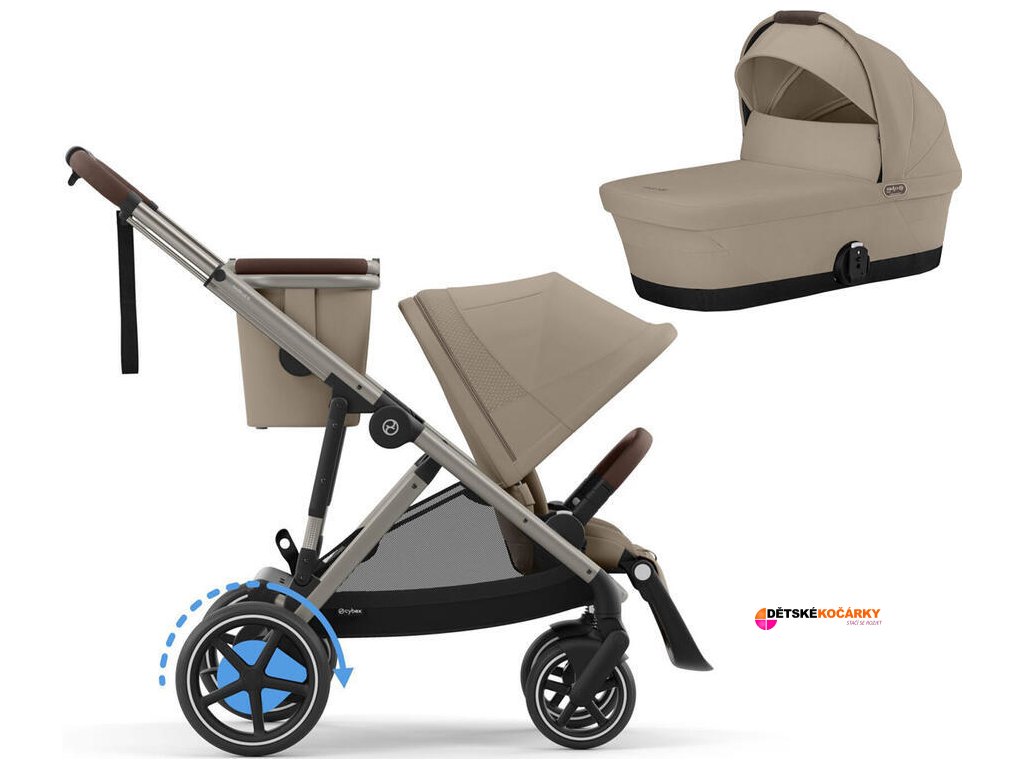 Kočárek CYBEX e-Gazelle S 2025 včetně korby + ZDARMA Fusak CYBEX Snogga 2, almond beige (taupe frame) + Fusak CYBEX Snogga 2