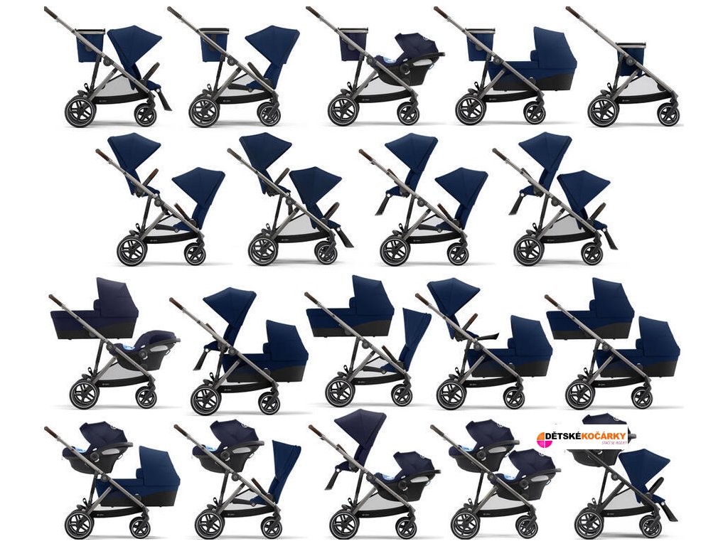 Doplňkové fotografie mají informativní charakter, zobrazují možné konfigurace a funkce kočárku.