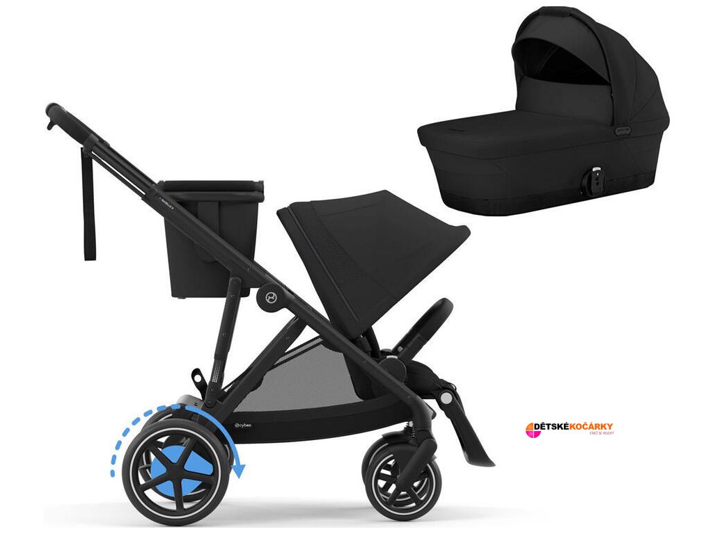 Kočárek CYBEX e-Gazelle S 2025 včetně korby + ZDARMA Fusak CYBEX Snogga 2, moon black (black frame) + Fusak CYBEX Snogga 2
