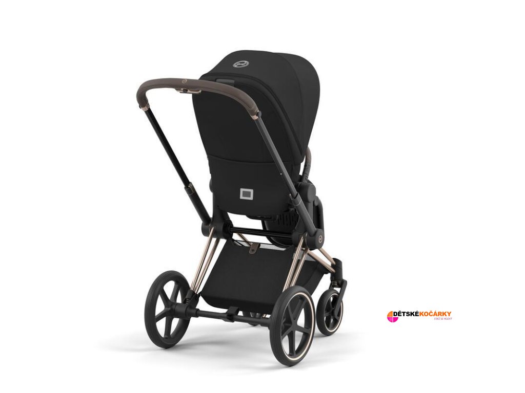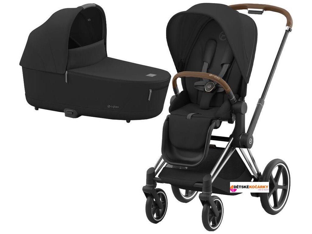 Set obsahuje: podvozek e-Priam Chrome Brown + Priam Seat Pack + hlubokou korbu CYBEX Priam Lux Carry Cot