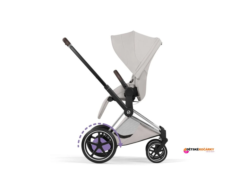 - díky špičkovým technologiím kočárku e-Priam zůstává jízda plynulá i na nerovném terénu, ať už jedete po dlažbě, parku, nebo podél pláže