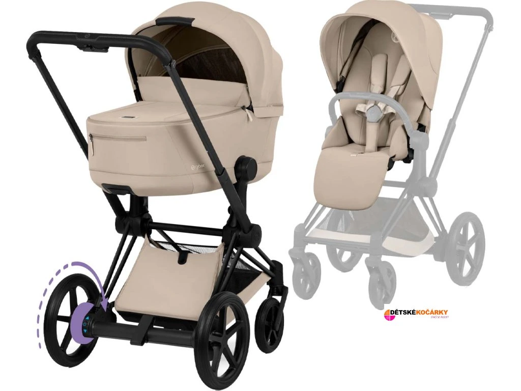 Jeho 4 v 1 cestovní systém s jedním podvozkem lze individuálně přizpůsobit dle potřeby. Priam Seat Pack je set, který se navléká na podvozek CYBEX e- Priam a tím vytvoří praktický, designový sportovní kočárek.