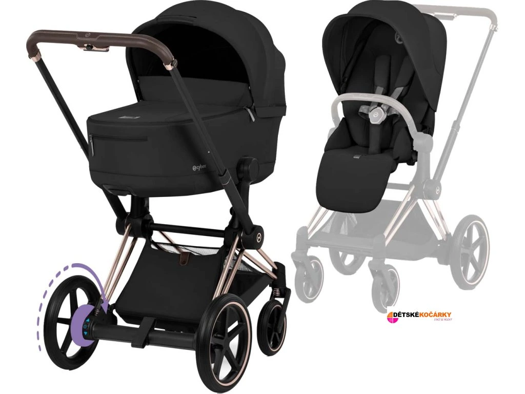 - nově možnost složení podvozku i s nasazenou hlubokou korbou Priam Fold Lux CarryCot kolekce 2026