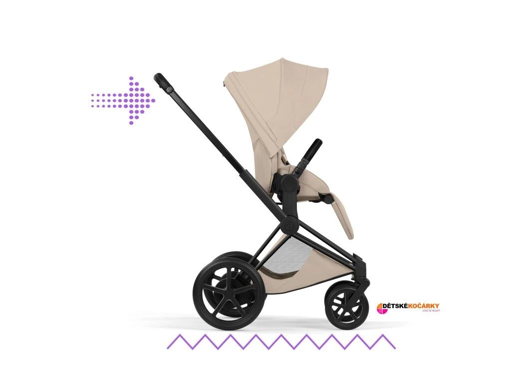 Kočárek CYBEX e-Priam Matt Black Seat Pack Style Collection včetně korby 2026, cozy beige