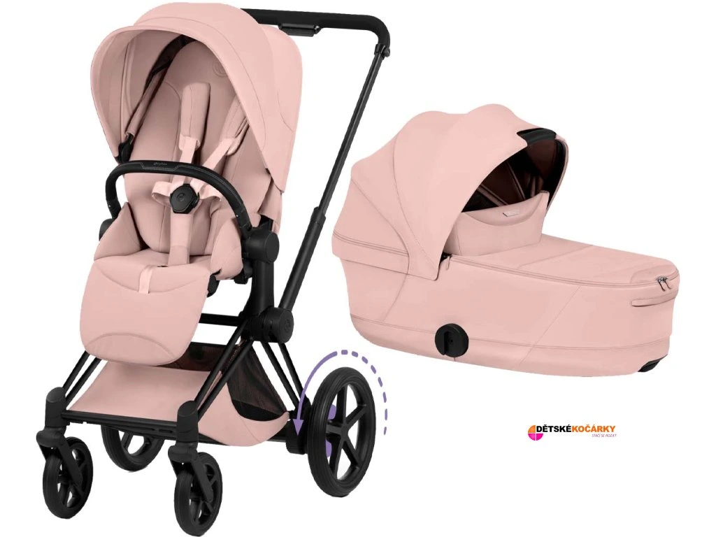 Kočárek CYBEX e-Priam Matt Black Seat Pack Style Collection včetně korby 2026, peach pink