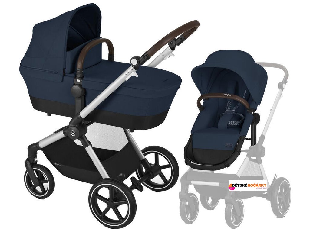 Set obsahuje: podvozek CYBEX Eos Lux + korbičku přestavitelnou na sportovní sedačku + košík pod kočárek