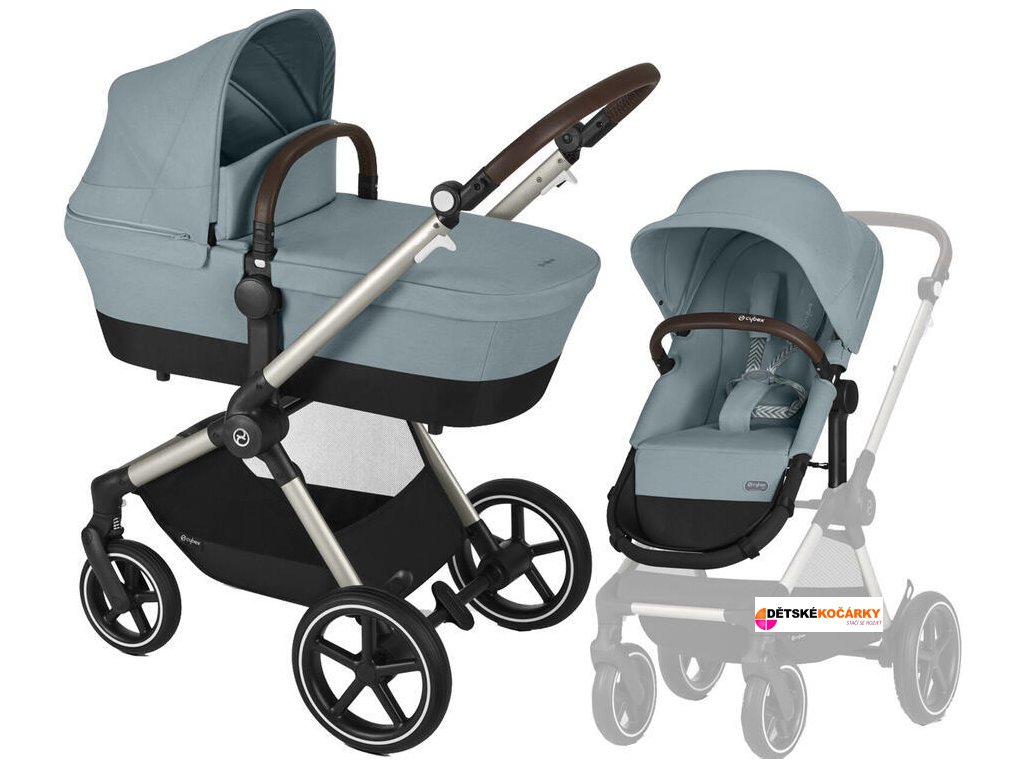 Set obsahuje: podvozek CYBEX Eos Lux + korbičku přestavitelnou na sportovní sedačku + košík pod kočárek