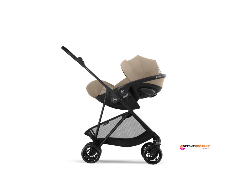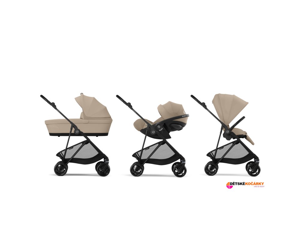 Set obsahuje: podvozek CYBEX Melio Carbon + otočnou sporotvní sedačku + odnímatelné madlo + Newborn Nest v příslušné barevné variantě + nákupní košík