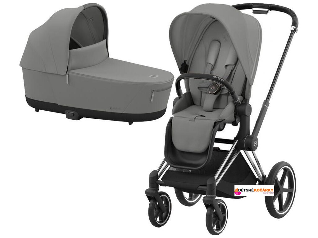 Set obsahuje: podvozek Priam Chrome Black + Priam Seat Pack + hlubokou korbu CYBEX Priam Lux Carry Cot