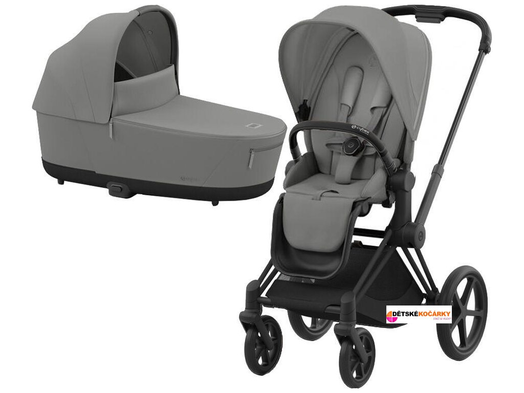 Set obsahuje: podvozek Priam Matt Black + Priam Seat Pack + hlubokou korbu CYBEX Priam Lux Carry Cot