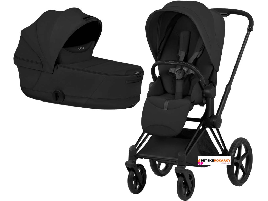 Set obsahuje: podvozek CYBEX Priam Matt Black Style Collection + sportovní sedačku CYBEX Priam Seat Pack Style Collection + hlubokou korbu CYBEX Priam Fold Lux Carry Cot Style Collection
