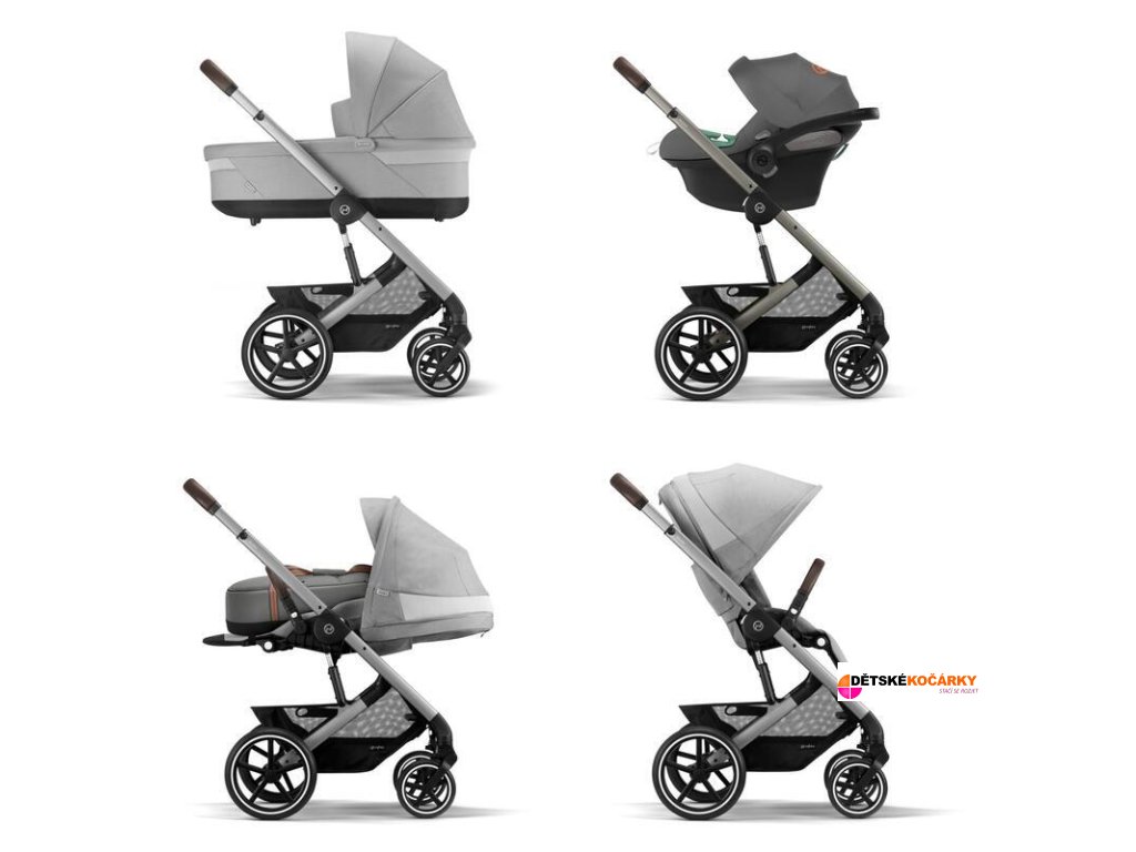 Set obsahuje: rám Balios S Lux včetně koleček + sportovní sedačku + sluneční stříšku + nákupní košík + přední madlo + hlubokou korbu Carry Cot S Lux + autosedačku CYBEX Cloud G i-Size