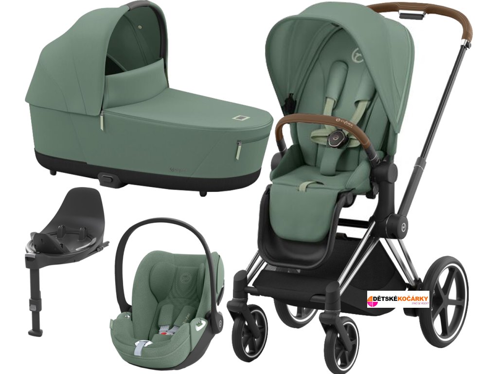 Kočárek CYBEX Set e-Priam Chrome Brown Seat Pack 2024 včetně Cloud T i-Size PLUS a báze, leaf green