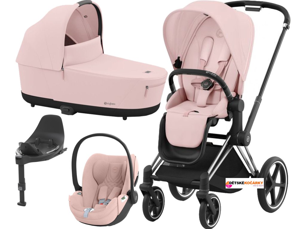Kočárek CYBEX Set Priam Chrome Black Seat Pack 2024 včetně Cloud T i-Size PLUS a báze T, peach pink