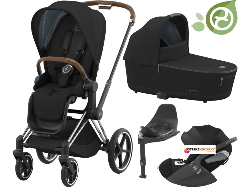 Kočárek CYBEX Set Priam Chrome Brown Seat Pack Conscious Collection včetně Cloud T i-Size a Base T, onyx black