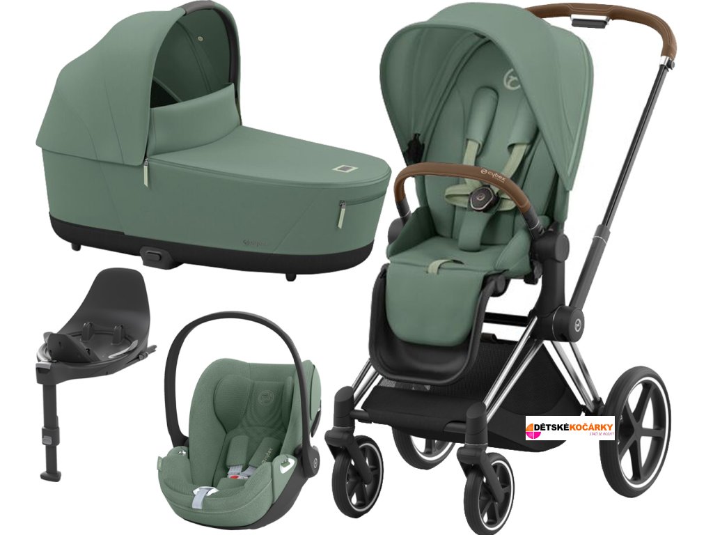Kočárek CYBEX Set Priam Chrome Brown Seat Pack 2024 včetně Cloud T i-Size PLUS a báze T, leaf green
