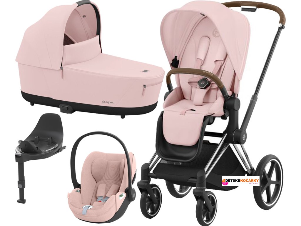 Kočárek CYBEX Set Priam Chrome Brown Seat Pack 2024 včetně Cloud T i-Size PLUS a báze T, peach pink