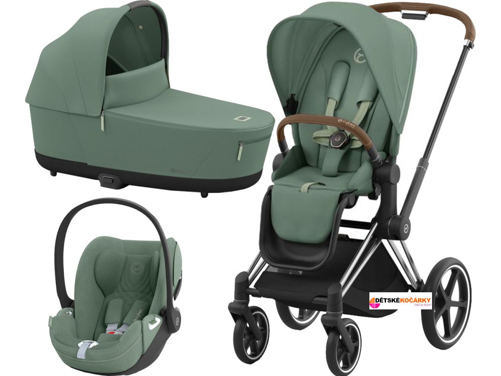 Kočárek CYBEX Set Priam Chrome Brown Seat Pack 2024 včetně Cloud T i-Size PLUS, leaf green