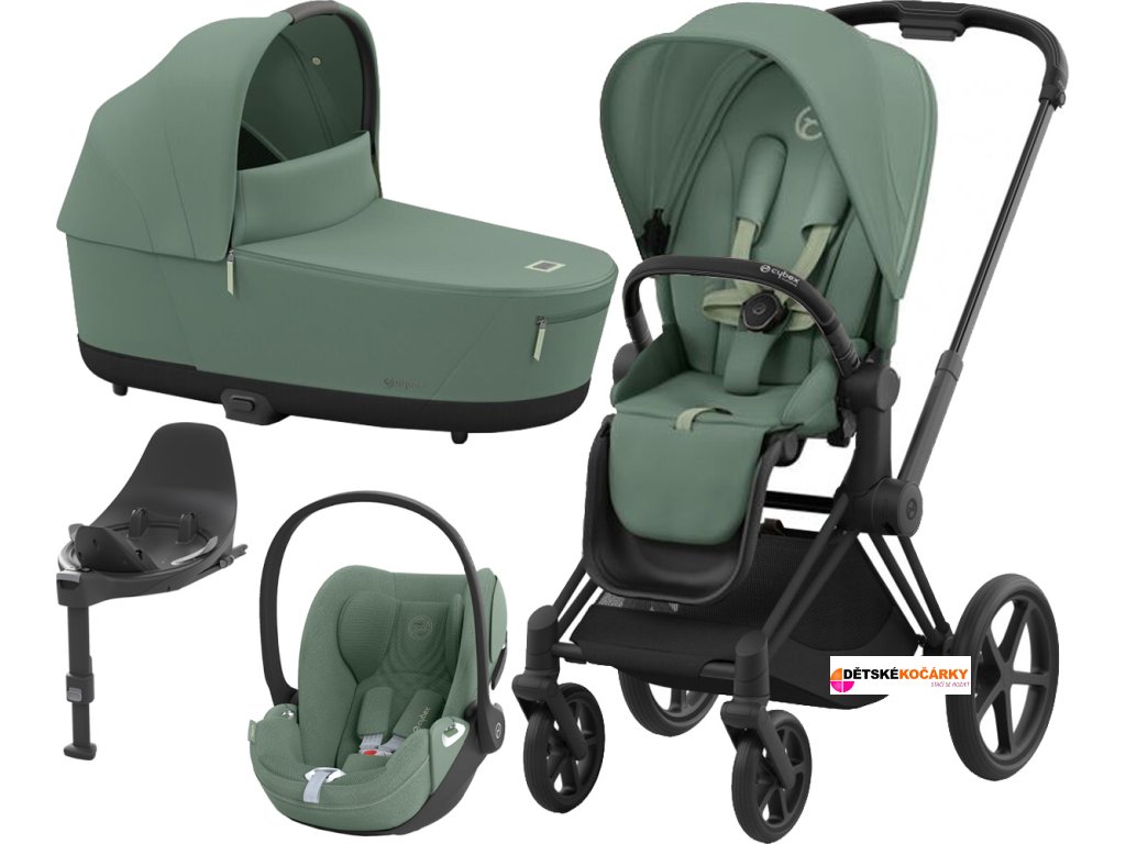 Kočárek CYBEX Set Priam Matt Black Seat Pack 2024 včetně Cloud T i-Size PLUS a báze T, leaf green