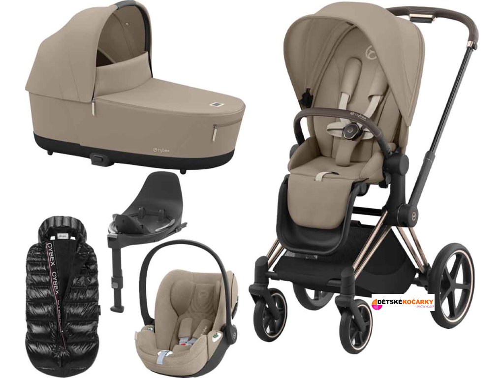Kočárek CYBEX Set Priam Rosegold Seat Pack 2024 včetně Cloud T i-Size PLUS a báze T + ZDARMA Zimní fusak, cozy beige + ZDARMA Zimní fusak CYBEX Platinum
