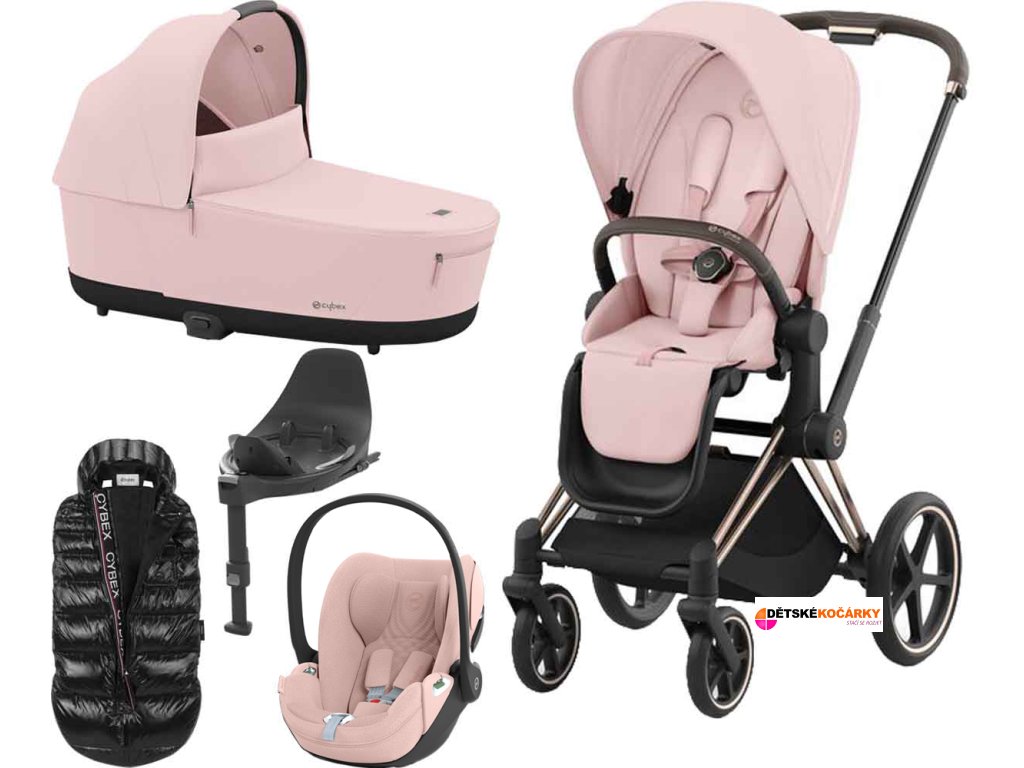 Kočárek CYBEX Set Priam Rosegold Seat Pack 2024 včetně Cloud T i-Size PLUS a báze T + ZDARMA Zimní fusak, peach pink + ZDARMA Zimní fusak CYBEX Platinum