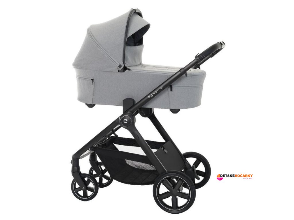 Kočárek ESPIRO Only je nová kategorie lehkého, kompaktního a funkčního kočárku 2v1. Aby bylo používání podvozku co nejjednodušší, je rám vyroben z lehkého hliníku, lze jej složit na minimální velikost pouze jedním pohybem ruky, takže jej lze snadno přemisťovat a skladovat naplocho a svisle. Podvozek má také velmi prostorný košík, do kterého se vejde mnoho příslušenství a před vypadnutím ho chrání kryt na zip. Rám je také vybaven oboustranným držákem nápojů.