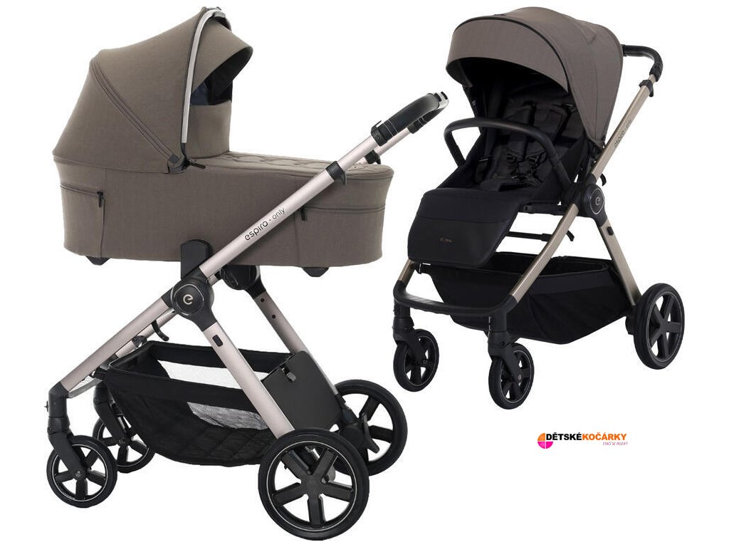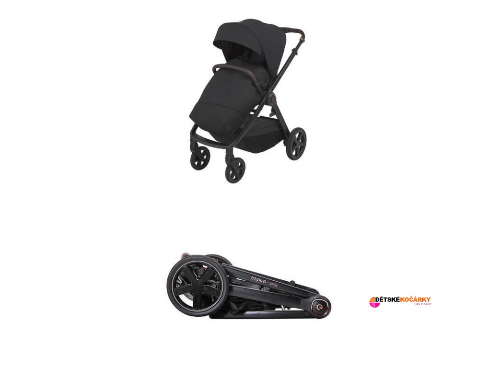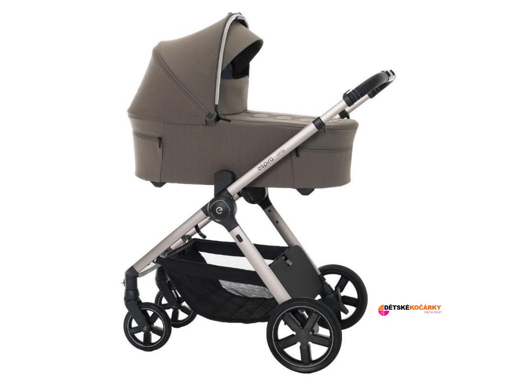 Kočárek ESPIRO Only je nová kategorie lehkého, kompaktního a funkčního kočárku 2v1. Aby bylo používání podvozku co nejjednodušší, je rám vyroben z lehkého hliníku, lze jej složit na minimální velikost pouze jedním pohybem ruky, takže jej lze snadno přemisťovat a skladovat naplocho a svisle. Podvozek má také velmi prostorný košík, do kterého se vejde mnoho příslušenství a před vypadnutím ho chrání kryt na zip. Rám je také vybaven oboustranným držákem nápojů.