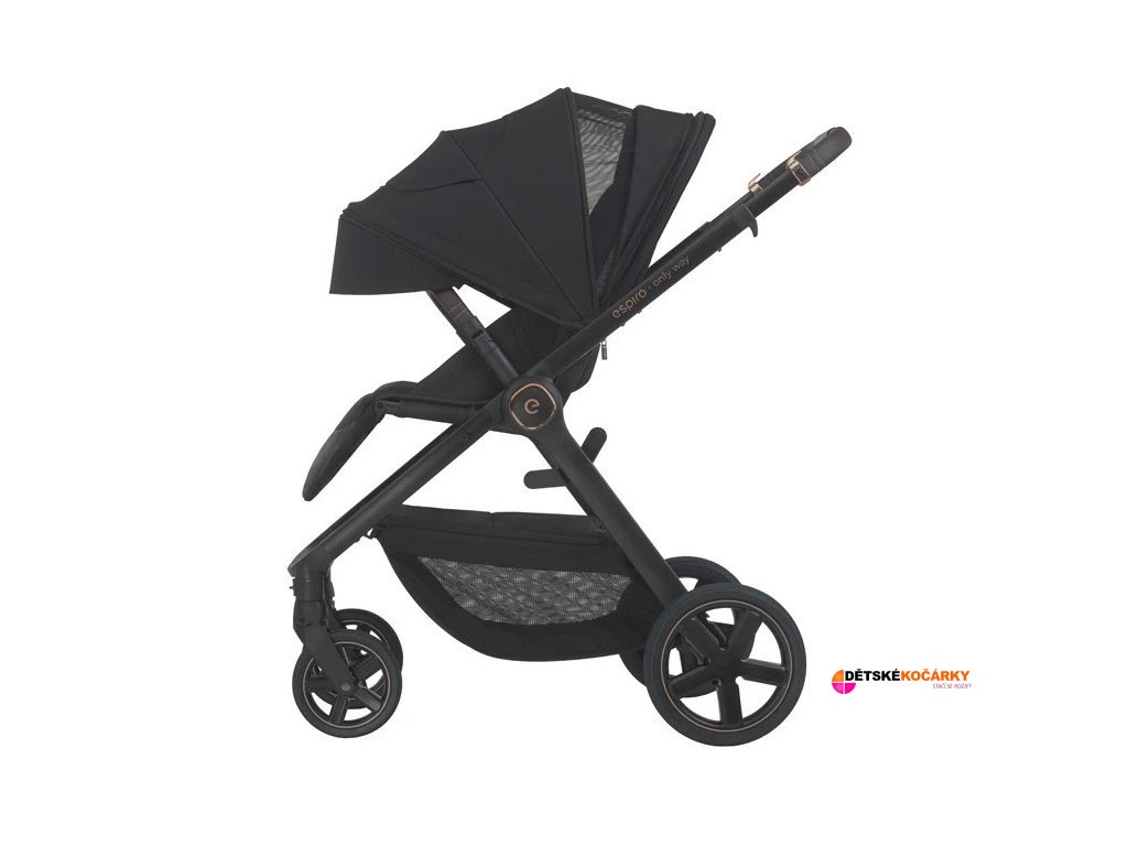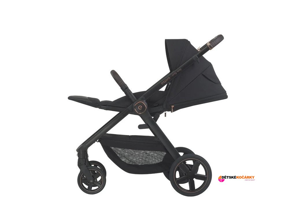 Lehce a příjemně – právě tak se ovládá kočárek ESPIRO Only. Rám kočárku váží pouhých 7 kg a po složení má kompaktní velikost. Je to vynikající volba pro rodiče, kteří často cestují se svým malým dítětem. Komfort při vedení tohoto kočárku zajišťují také jeho bezúdržbová (nevyžadující nafukování) kola, což je ideální na procházky po dlážděné ulici, v lese nebo po parkové cestě. Designová ražba na potahu, provedená technologií heat pressingu a změna v šití potahu pomáhá v kombinaci s novým designem korby vytvářet elegantní a štíhlý design kočárku. Rám kočárku Espiro Only lze snadno spojit jak s korbou, sportovní verzí, tak i s autosedačkou. Jak korba tak sportovní sedačka mají integrovanou moskytiéru a jsou vyrobeny z materiálů odpuzujících vodu i nečistoty.