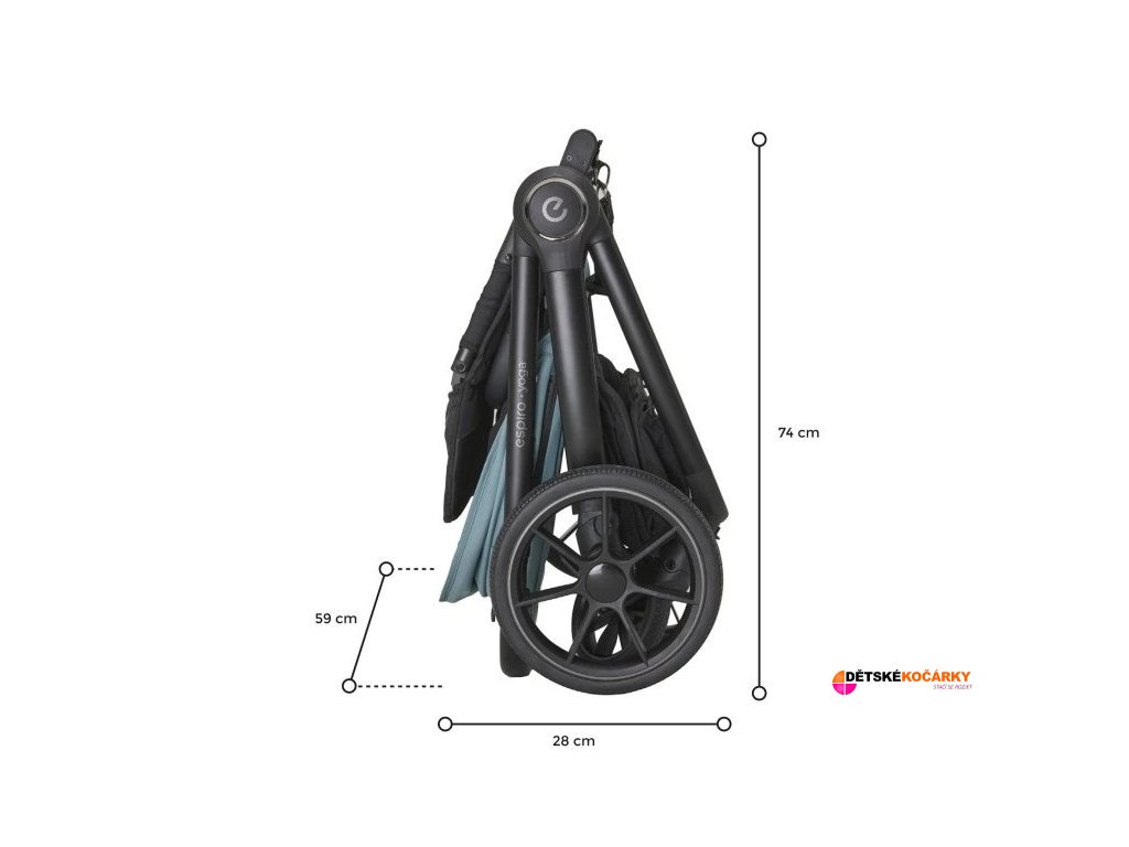 Rám kočárku Espiro Yoga je vyroben z lehkého hliníku, vážícího pouhých 8 kg. Bez problémů jej složíte jednou rukou a pohodlně přenesete na rameni díky elastickému popruhu, který je k rámu připevněn. To vám usnadní jeho transport a skladování. Rám lze složit také se sportovní sedačkou, takže ji nemusíte vyndávat, pokud chcete kočárek vložit do kufru.