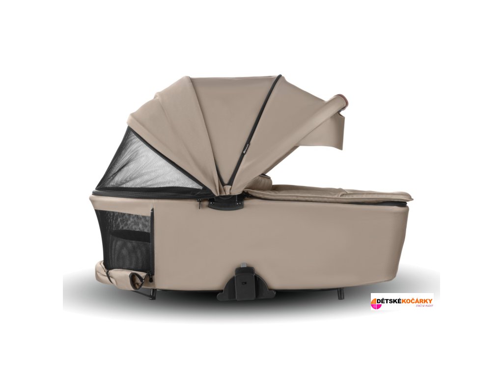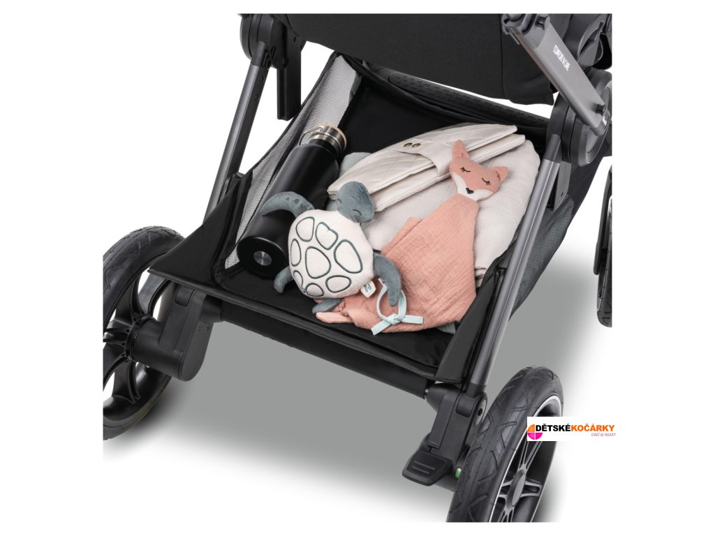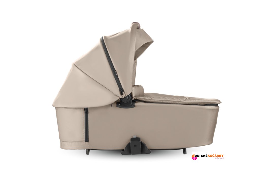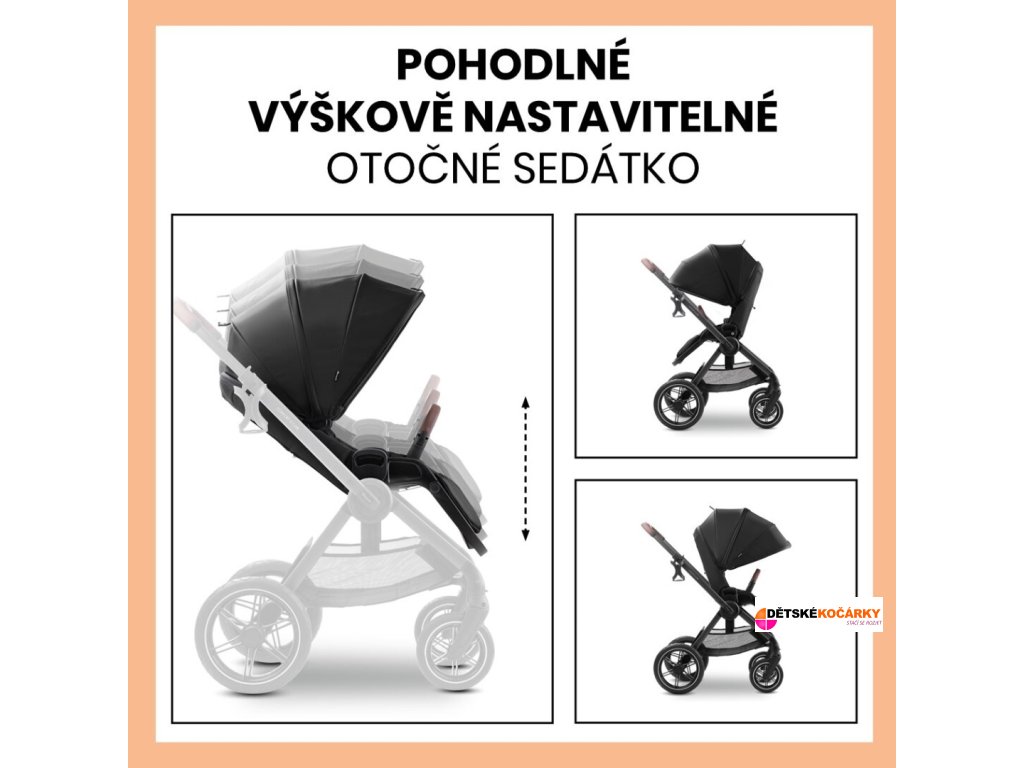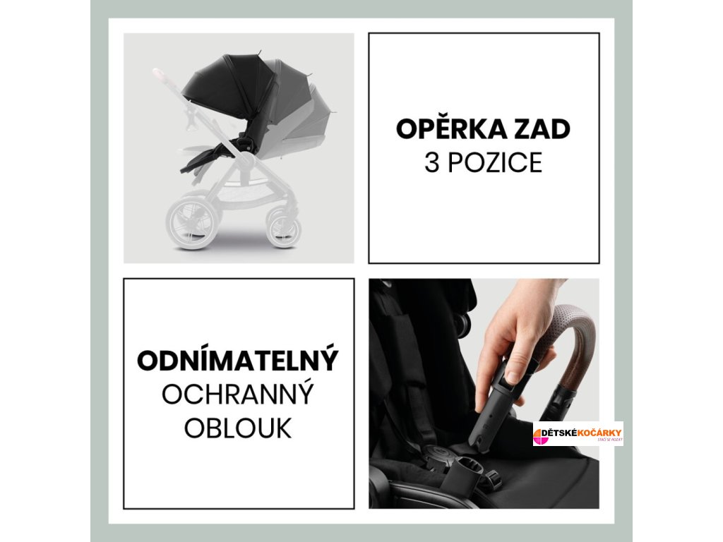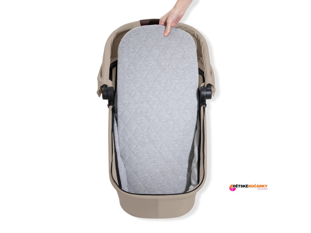Prostorná a pohodlná korbička je určená pro každodenní procházky a díky její bavlněné podšívce a matraci s letní a zimní stranou se v ní bude miminko cítit jako v bavlnce. Paměťová tlačítka umožní odpojit korbu z konstrukce snadno, rychle a jen jednou rukou. Výškově nastavitelné otočné sedátko, navíc s extra dlouhým sezením a polohováním, poskytuje dítěti maximální pohodlí v každé situaci. Sedátko je navíc vybaveno výškově nastavitelným 5-ti bodovým bezpečnostním pásem a dobře polstrovanou, extra-vysokou opěrkou zad. Ochranný oblouk lze v případě potřeby plně odejmout nebo jen „otevřít“ pro snadné nastupování a vystupování.