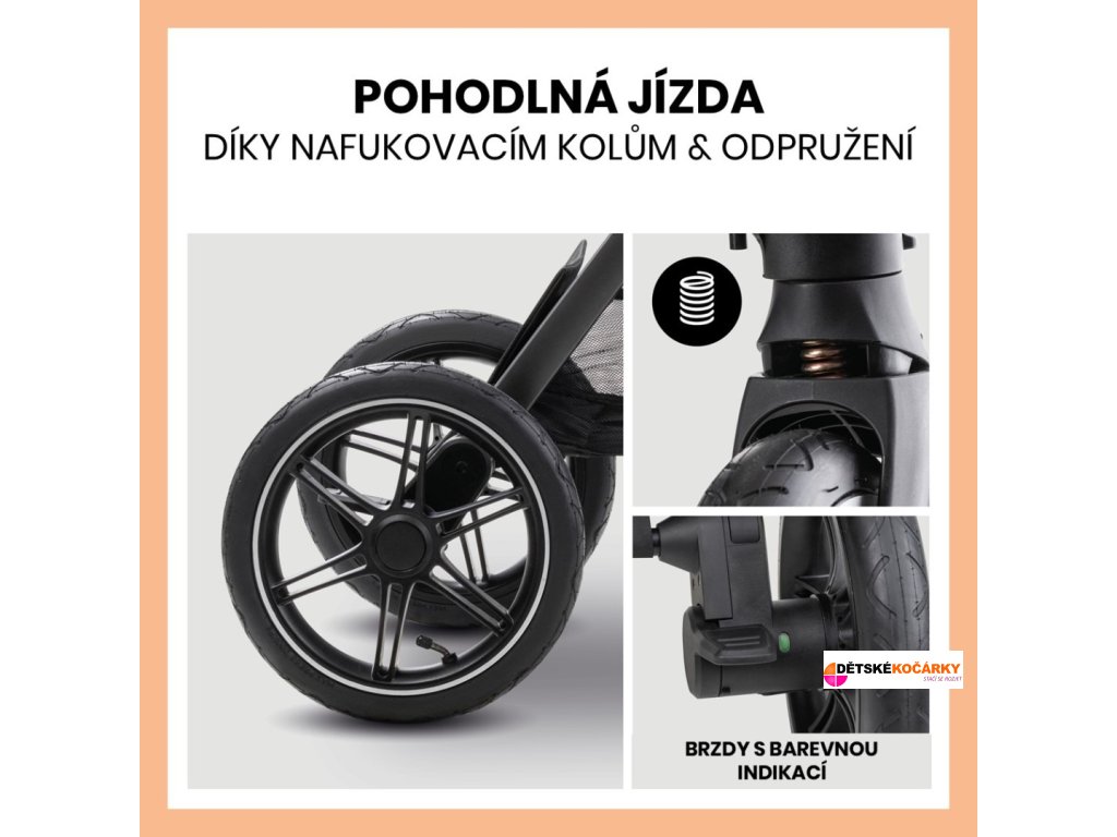 Prémiový kombinovaný kočárek HAUCK Comfort N Care Air 2v1 poskytuje maximální pohodlí a bezpečí pro děti od narození do 22kg. S robustním hliníkovým rámem, velkými nafukovacími koly a odpružením 4x4, jste dobře vybaveni do každého terénu. Ještě větší pohodlí a bezpečnost vám nabízí brzdový systém s barevným indikátorem. Kočárek i korbička jsou ve složeném stavu velmi kompaktní – kočárek je po složení díky přepravní pojistce navíc samostatně stojící!