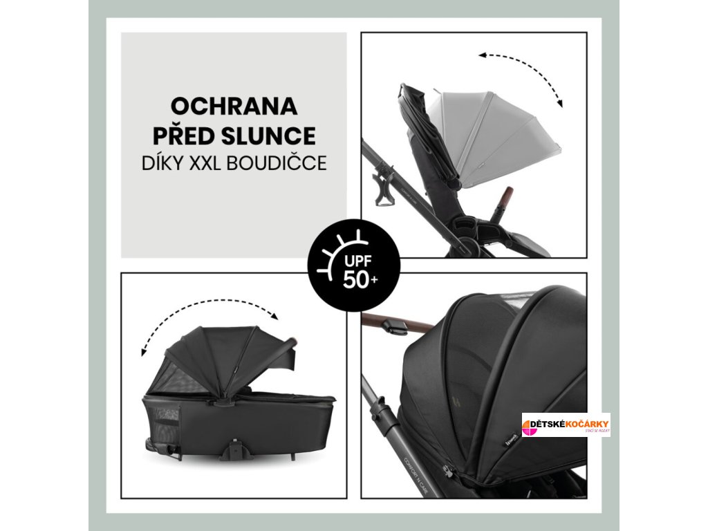 - prodloužená XL sluneční stříška s ochranou proti UV záření 50+