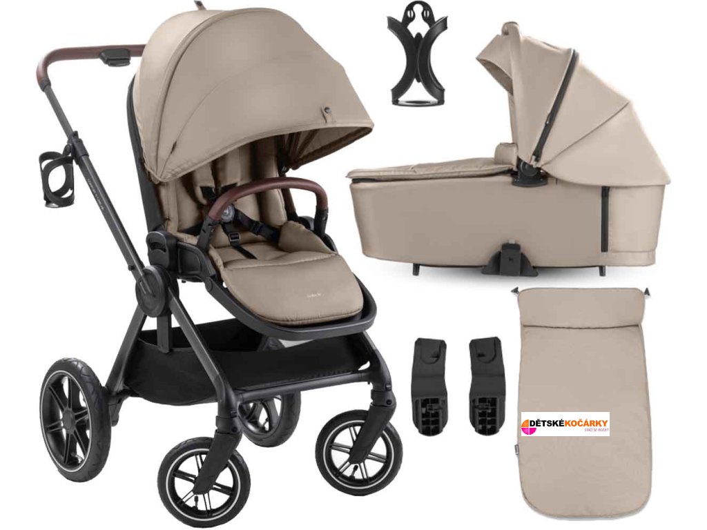 Set obsahuje: podvozek HAUCK Comfort N Care Air + hlubokou korbu + sportovní sedačku + nánožník + držák nápojů + univerzální adaptéry na autosedačku