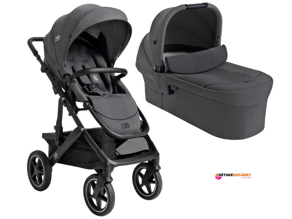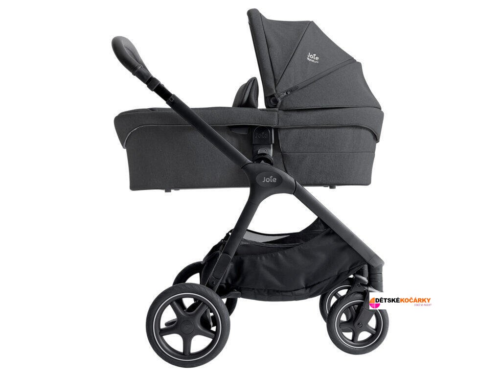 Set obsahuje: kočárek JOIE Vinca™ + hlubokou korbu JOIE Ramble XL + adaptéry pro hlubokou korbu i autosedačky + pláštěnku + košík pod kočárek + vnitřní vložku