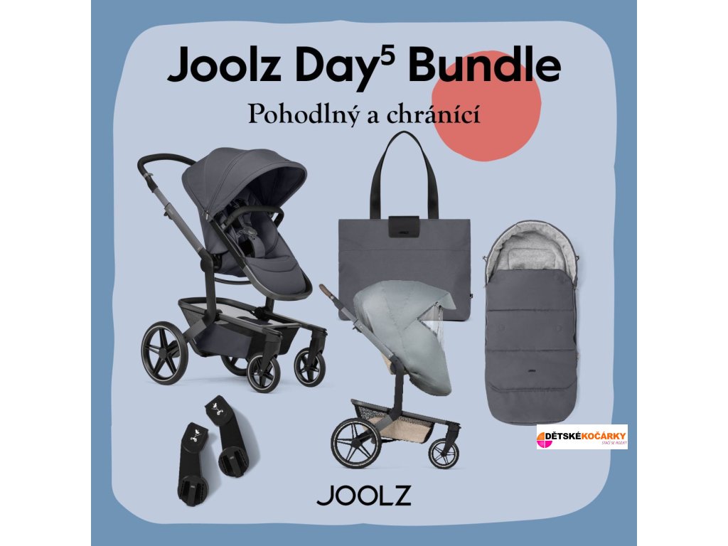 Set obsahuje: podvozek JOOLZ Day5 + rám hluboké korby a sportovní sedačky + textilie hlubokého dílu + textilie sportovní sedačky