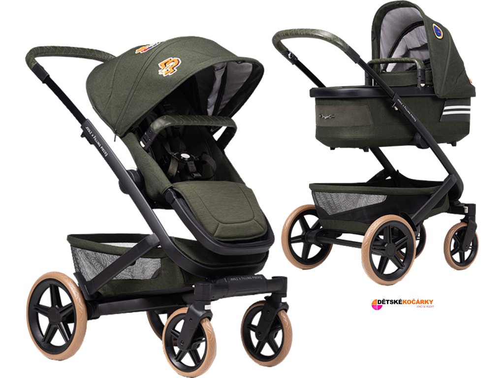 Set obsahuje: podvozek JOOLZ Geo3 v černé barvě + rám sportovní nástavby + textilii sportovní nástavby (textílie totožná s barvou URBAN GREEN) + rám hluboké korby + textilii hluboké korby (textílie totožná s barvou URBAN GREEN) + XL nákupní koš + madlo před dítě + backpack v černé barvě