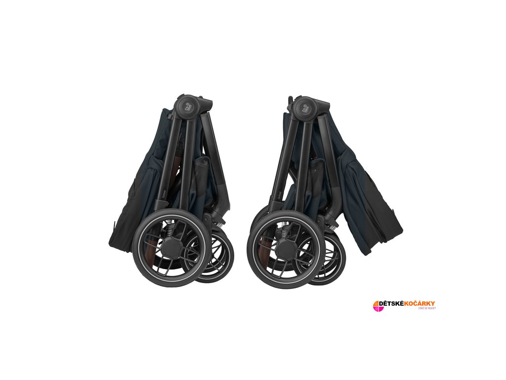 - po složení do kompaktního tvaru je možné kočárek postavit