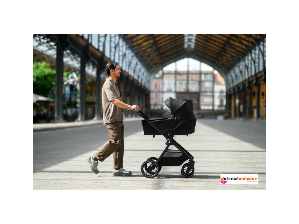 - přední kola kočárku jsou otočná o 360° a lze je snadno zaaretovat pro plynulou jízdu