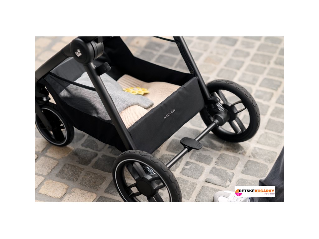 - nožní brzda se snadno ovládá sešlápnutím pro zabrždění i odbrždění kočárku
