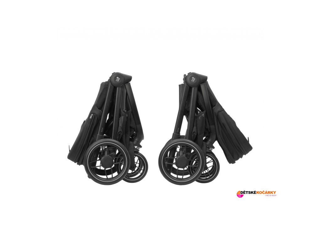 - po složení do kompaktního tvaru je možné kočárek postavit