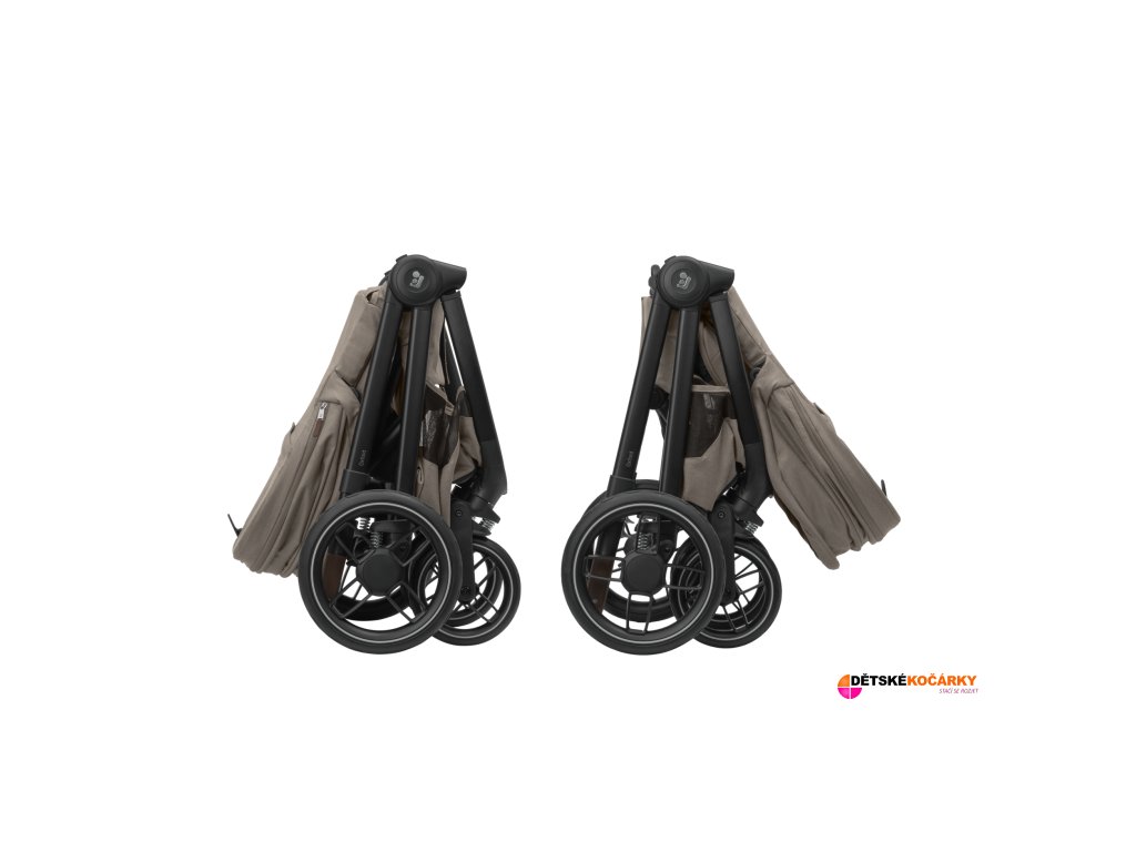 - po složení do kompaktního tvaru je možné kočárek postavit