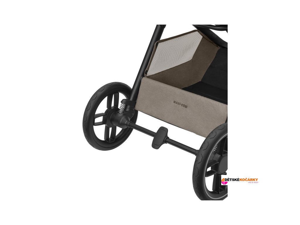 - nožní brzda se snadno ovládá sešlápnutím pro zabrždění i odbrždění kočárku