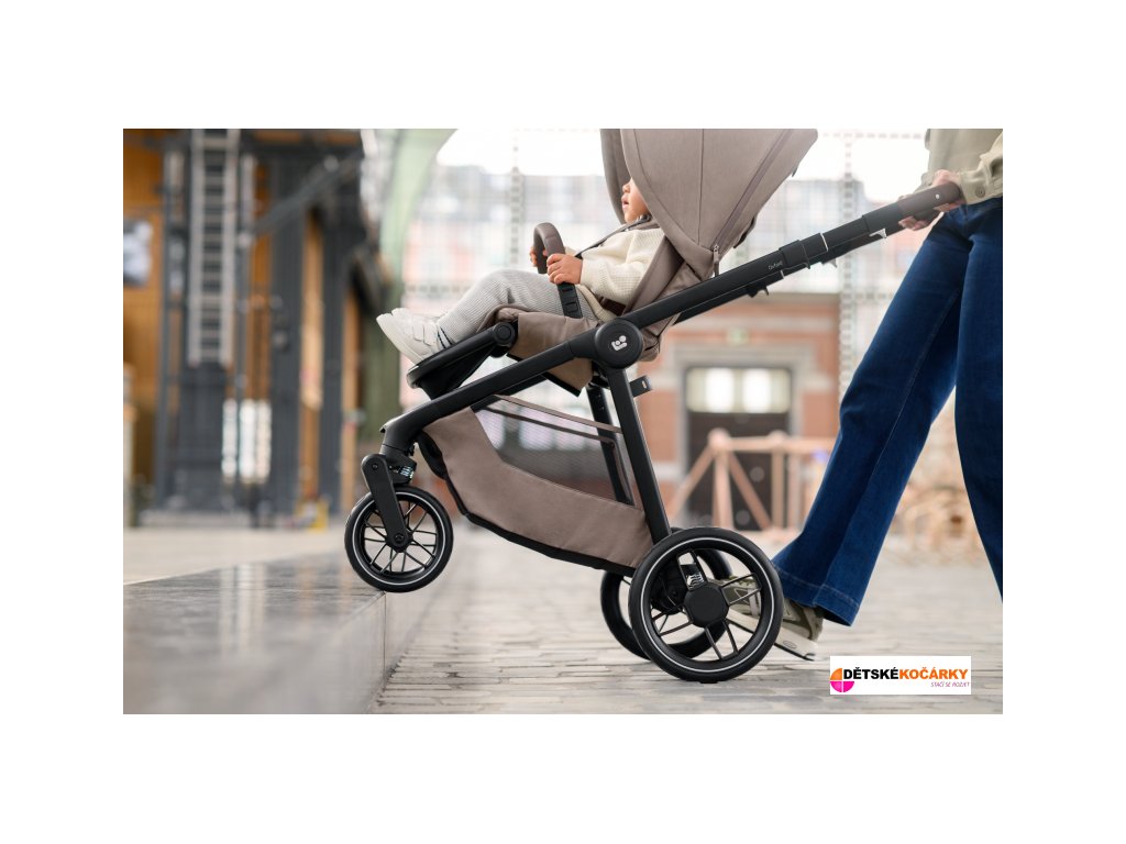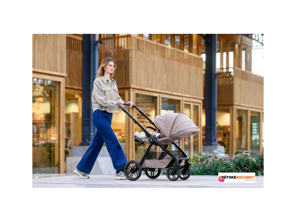 - přední kola kočárku jsou otočná o 360° a lze je snadno zaaretovat pro plynulou jízdu