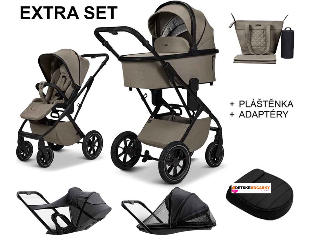 Kočárek MOON PIÚ EXTRA SET 2025, mud - black matt