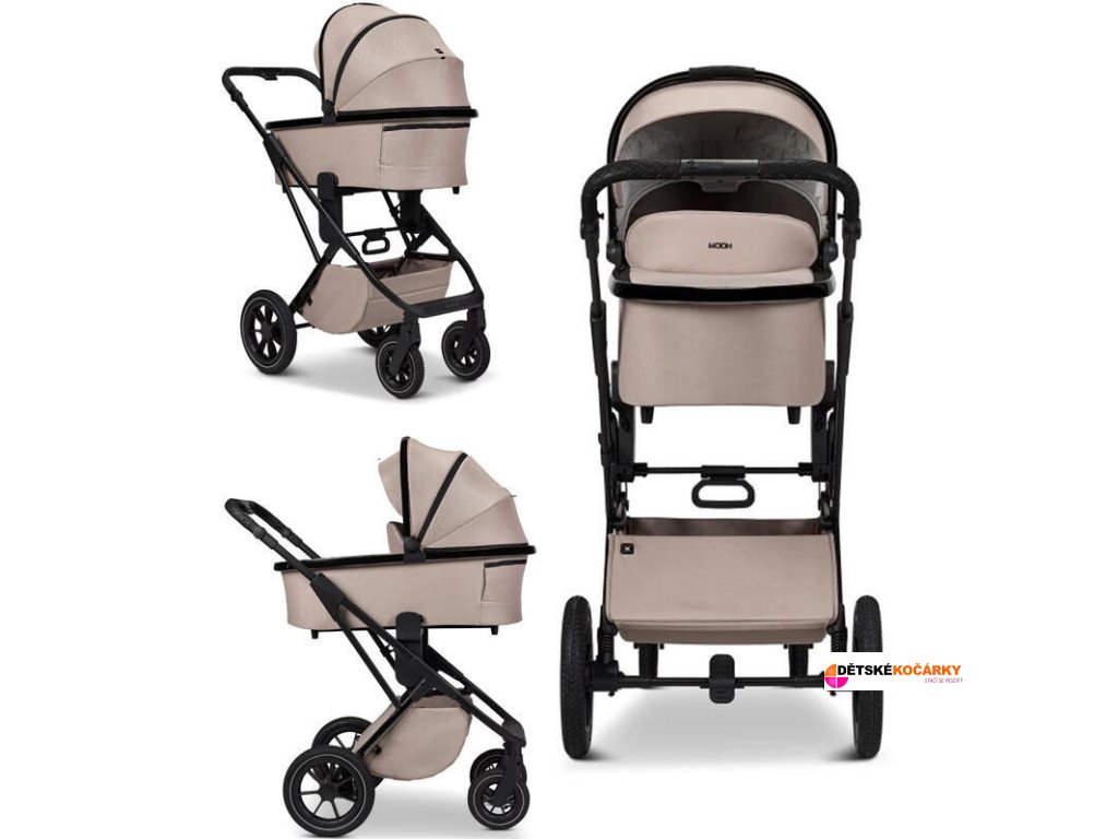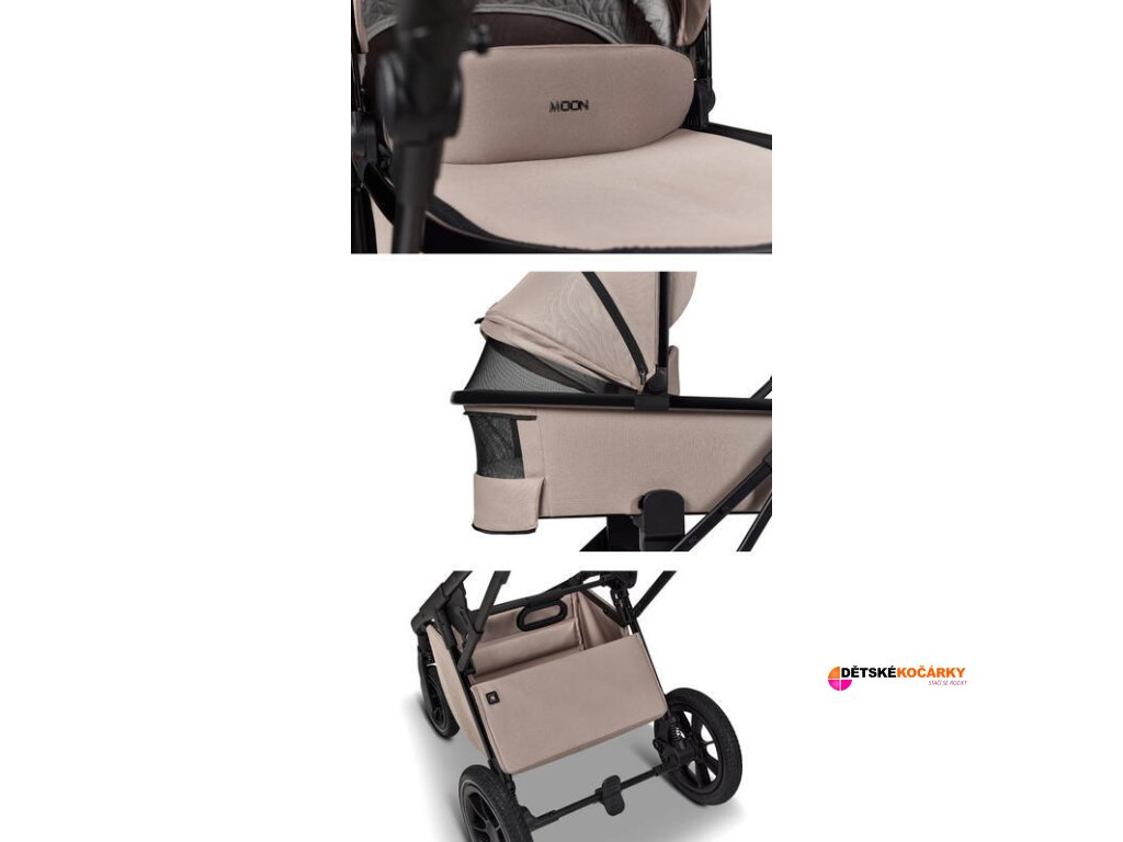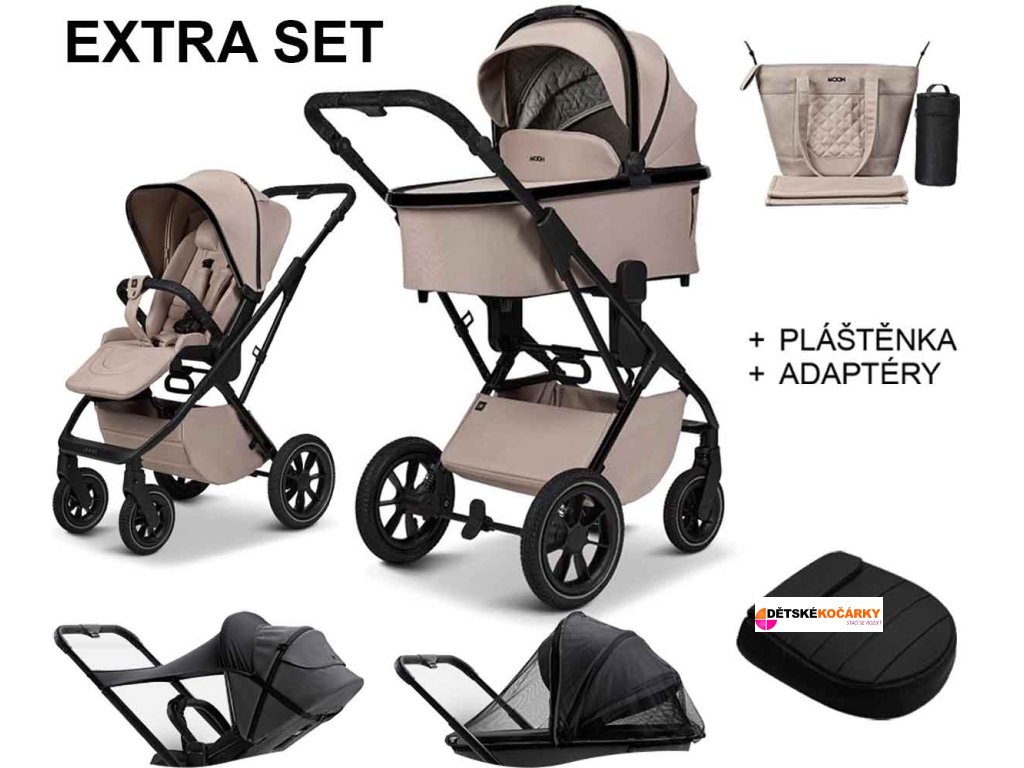 Kočárek MOON PIÚ EXTRA SET 2025, sand - black chrome