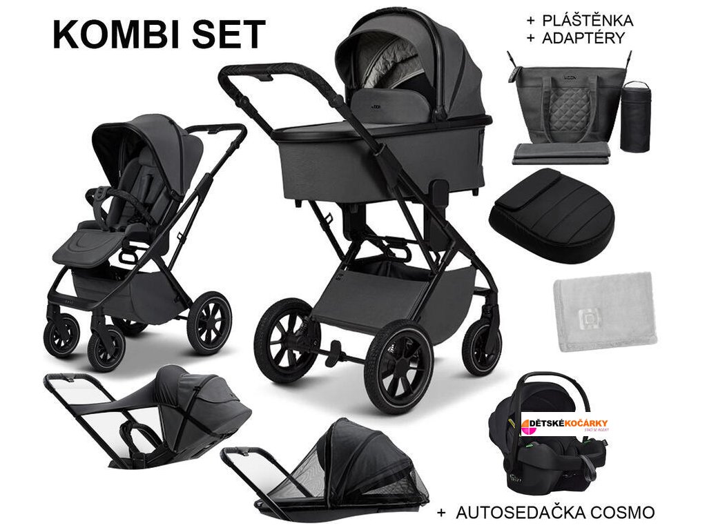 Varianta KOMBI je set doplněný o autosedačku AVIONAUT Cosmo a adptéry, které Vám umožní usadit autosedačku na podvozek kočárku. Dalším doplňkem rozšiřující tento set je prostorný nánožník a pláštěnka vhodná na sportovní sedačku i hlubokou korbu.