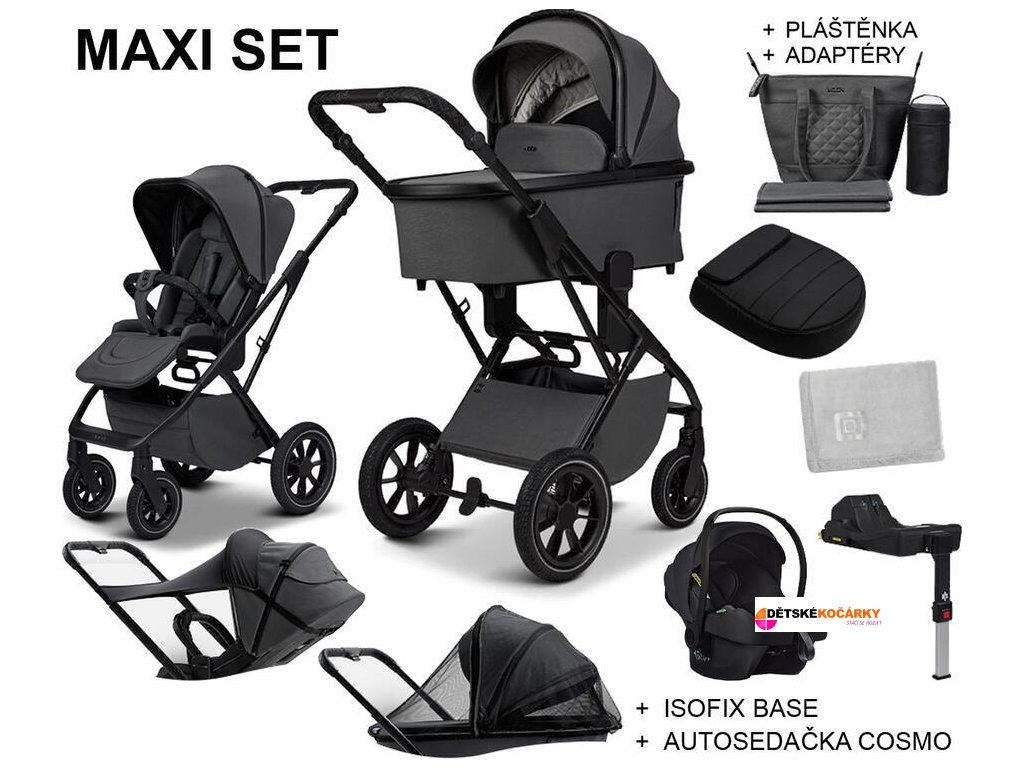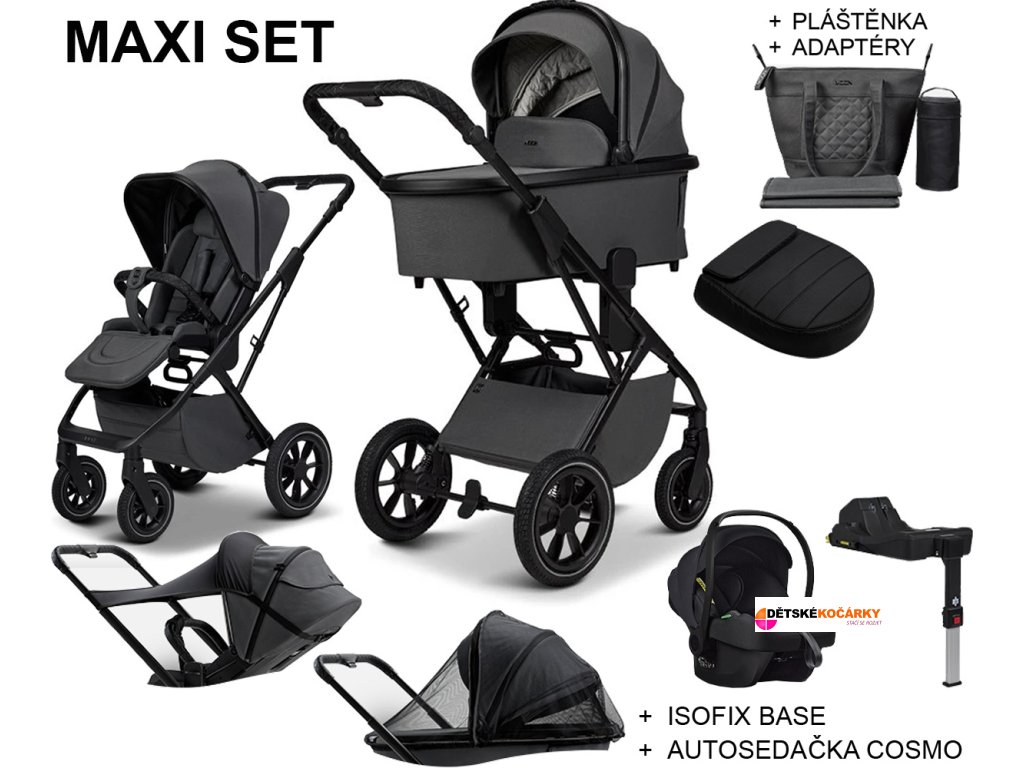 Varianta MAXI je set doplněný o autosedačku AVIONAUT Cosmo, základnu ISOFIX a adptéry, které Vám umožní usadit autosedačku na podvozek kočárku. Dalším doplňkem rozšiřující tento set je prostorný nánožník a pláštěnka vhodná na sportovní sedačku i hlubokou korbu.