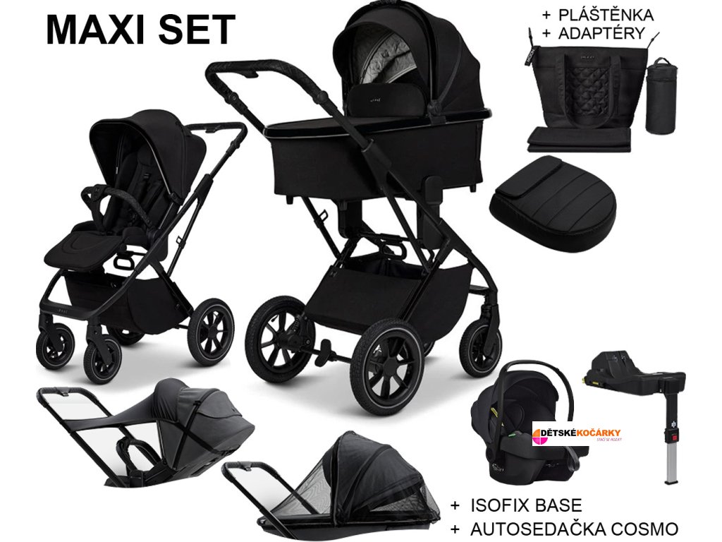 Varianta MAXI je set doplněný o autosedačku AVIONAUT Cosmo, základnu ISOFIX a adptéry, které Vám umožní usadit autosedačku na podvozek kočárku. Dalším doplňkem rozšiřující tento set je prostorný nánožník a pláštěnka vhodná na sportovní sedačku i hlubokou korbu.