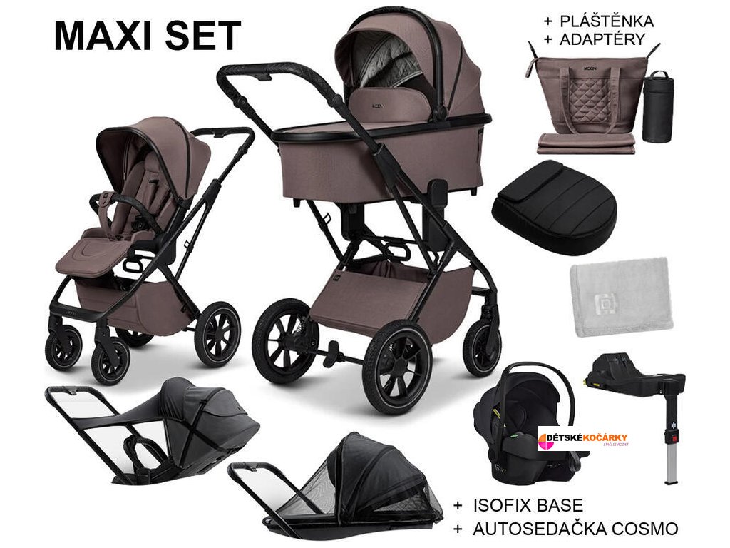 Kočárek MOON PIÚ MAXI SET 2025 + DÁREK Kočárek Zoe Onyx, tonka - black matt + Kočárek MOON Zoe Onyx
