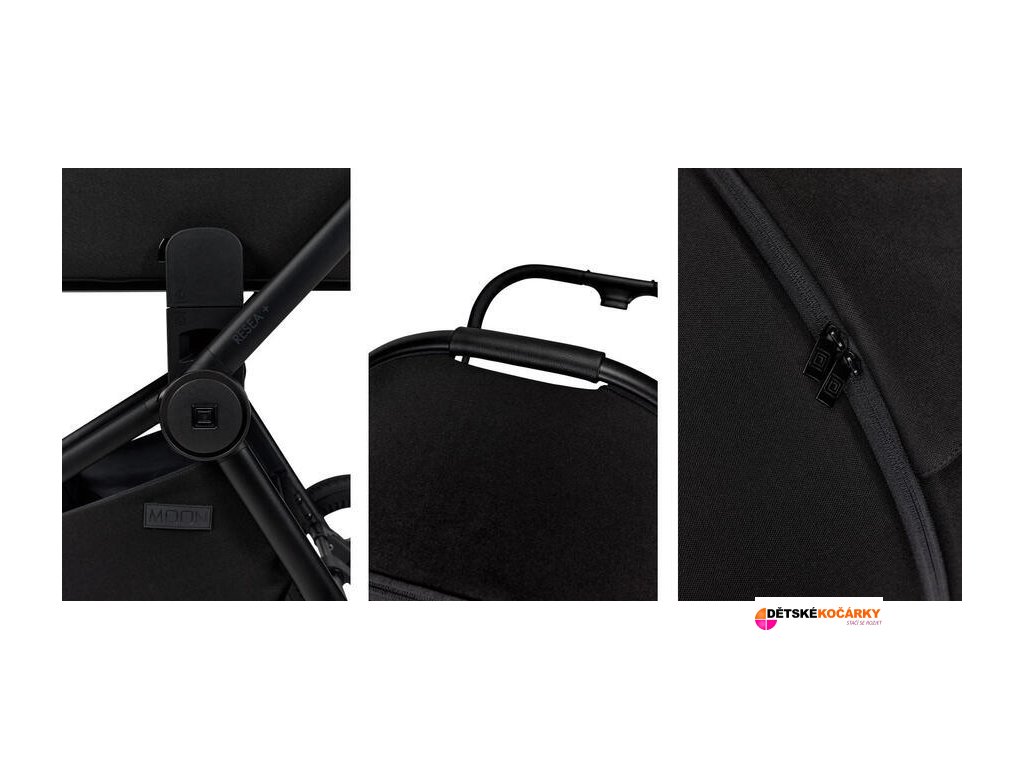 Kočárek MOON Resea+ je speciální řada v krásném designu. Vyniká především jednoduchým a rychlým skládáním včetně sportovního sedáku po i proti směru jízdy, maximálním odpružením díky velkým kolům, hlubokou vanou s ventilačním odepínacím okénkem. Kočárek je vyrobený z vysoce kvalitního extra silného textilního materiálu, který je prodyšný a vhodný pro alergiky. Textilní materiály jsou vodoodpudivé a odpuzují také nečistoty. Prošívané detaily z veganské kůže působí antibakteriálně, jsou protiskluzové a mají mimořádně kvalitní úpravu.